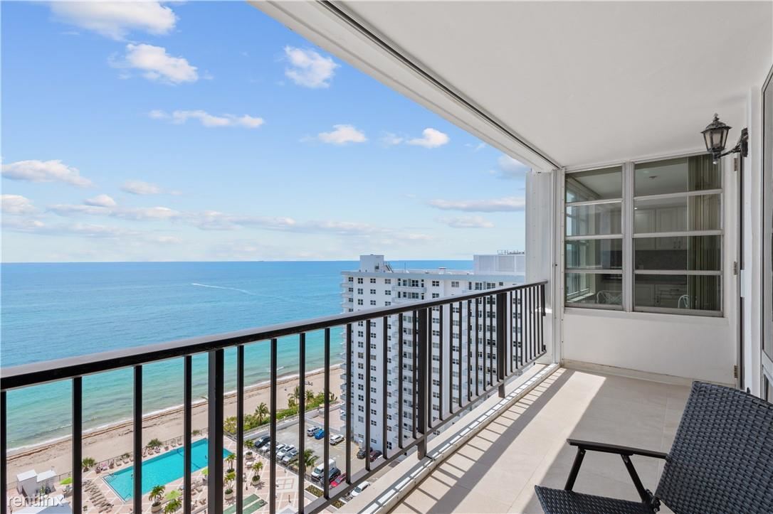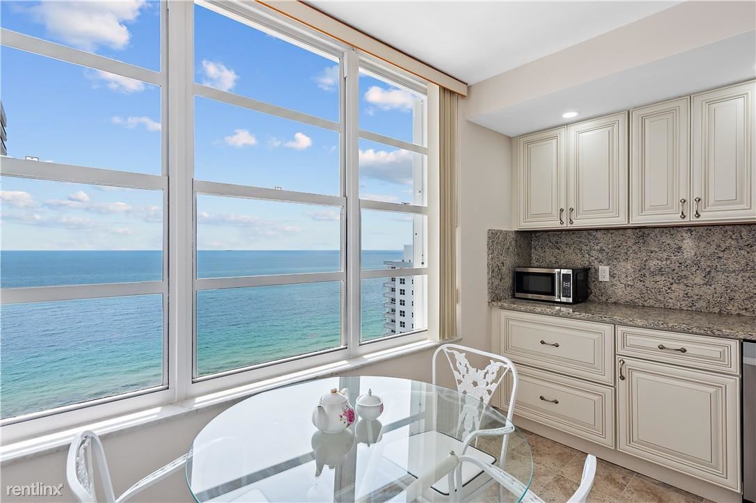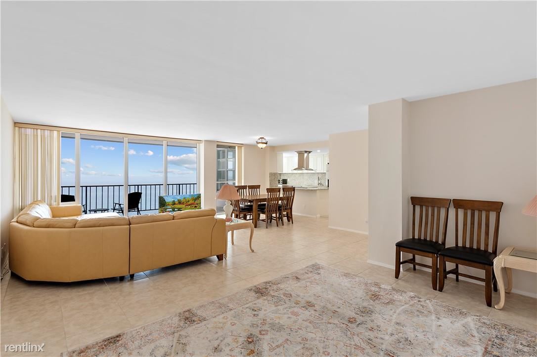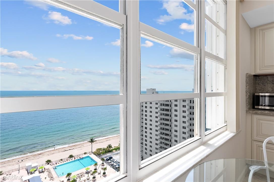 Partially furnished, HUGE one-bedroom unit available for ANNUAL rent. The semi-private elevator will take you to this sky-high beachfront condo. You will notice the consistent porcelain tile throughout and the stately floor-to-ceiling windows but will be stopped in your tracks when you see the magnificent unobstructed ocean views from the east and scenic Intracoastal views from the west. The updated contemporary kitchen includes a chef's range hood, Samsung refrigerator, and granite countertops. You will love the large bedroom, walk-in closets, and updated bathrooms. Oversized balcony, separate full-size laundry room, and garage parking space. The building has a full-size gym, community room, & a large heated swimming pool & sun deck. Shopping, stores, and services nearby.