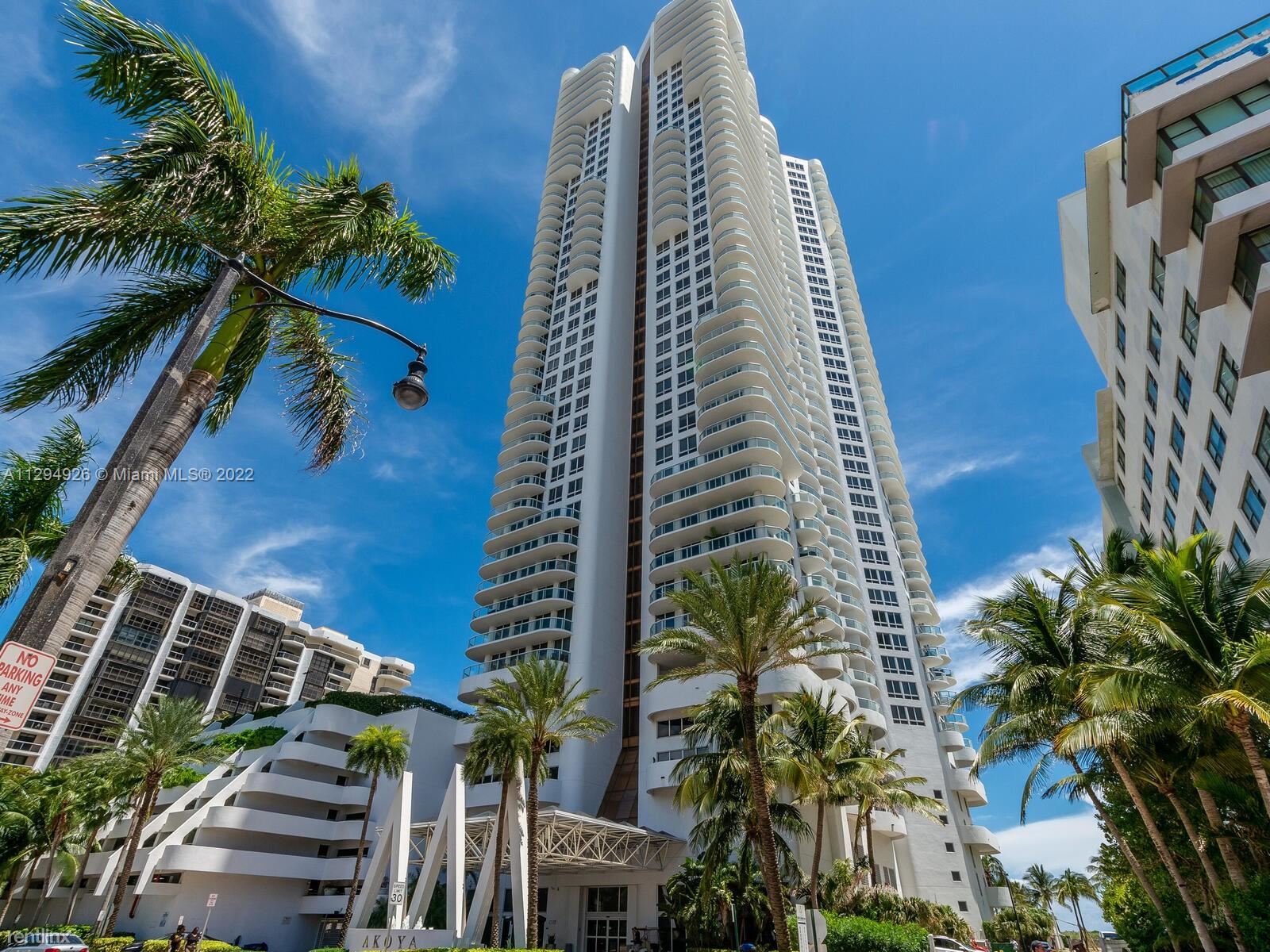 Akoya Condominiums is a 47 story, high-rise residential condominium located in Miami Beach, Florida. Built in 2004 and rising 150 meters (492 feet), Akoya Condominiums is the third tallest building in Miami Beach, after the 170 meter Blue and Green Diamonds. It was built as one of the last very tall buildings permitted in Miami Beach before a 1998 height ordinance, capping buildings at 200 feet, went into effect. The Akoya Condominiums were originally planned to be the White Diamond. Akoya has more floors than the Blue and Green Diamond buildings but does not have the diamond-shaped roof that they have. The original developer of the projects, Brazilian businessman Múcio Athayde, was forced to sell the White Diamond project in 2001 due to financial stresses that later put the other two buildings into bankruptcy. The project was completed by the MerCo Group, controlled by developer Homero Meruelo, which later also bought the nearby Deauville Hotel. The name "Akoya", referring to a type of cultured pearl, was chosen to replace the diamond theme. Akoya Condominiums is located along the beach of the Atlantic Ocean on Collins Avenue. Akoya Condominiums has 528 units, with 11 units per floor which translates to 48 floors. A modern fitness center, a tennis court, a swimming pool and racquetball facilities are available exclusively for Akoya’s residents. (RLNE2918170)