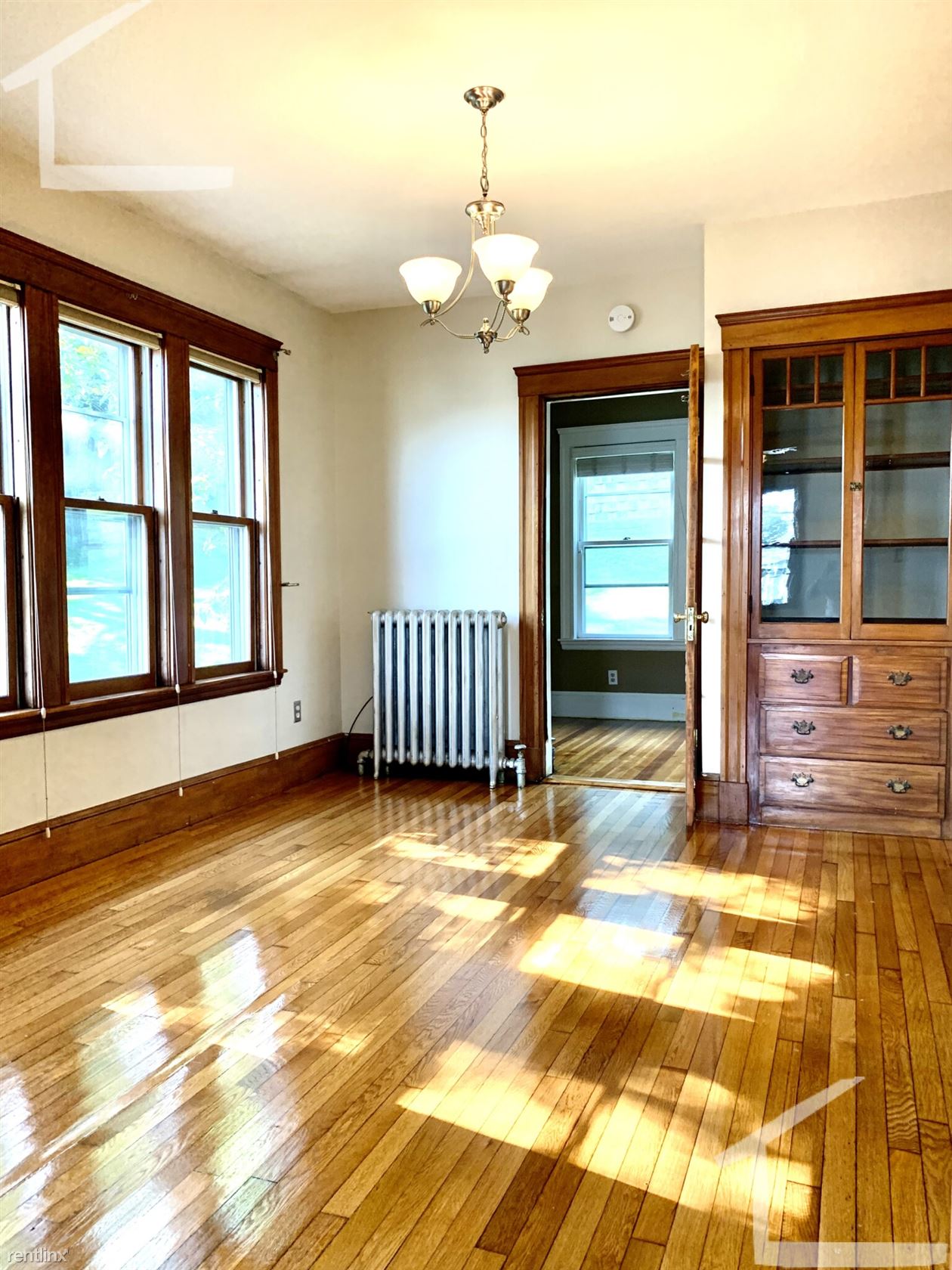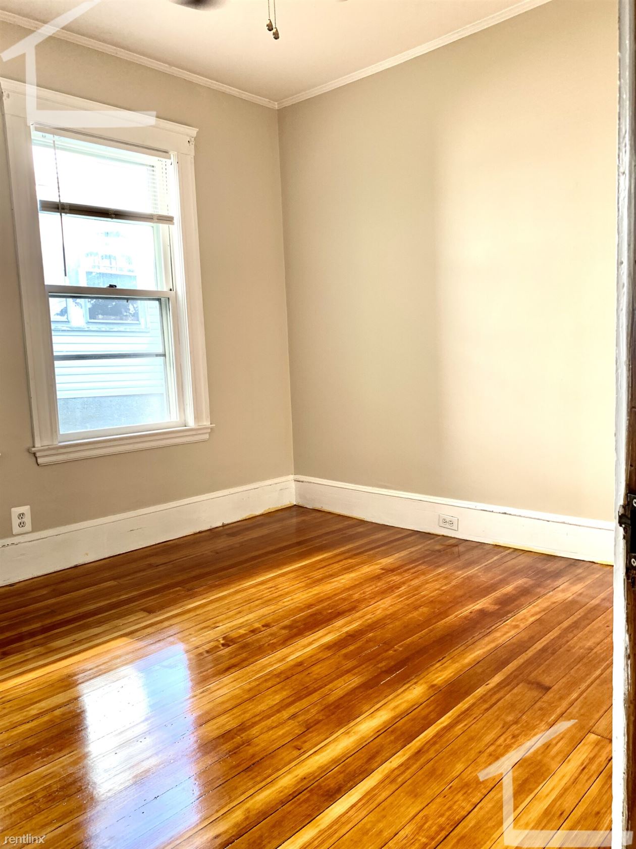 Custom blinds and refinished hardwood floors throughout