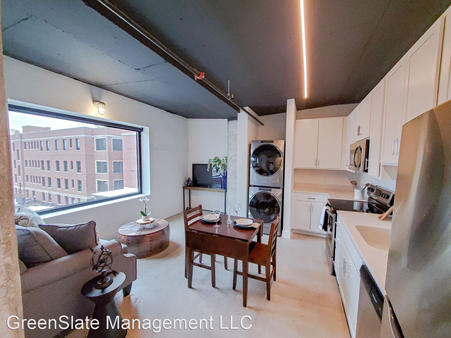 Dahlman Flats -Studio - The Dahlman Flats are a modern, masterfully-planned addition to our GreenSlate Management portfolio. The Dahlman offers you the quintessential city living experience with spectacular downtown views and superior access to the Old Market District. This redesigned building incorporates the classic style of exposed brick and vintage aesthetics in addition to modern finishes, polished concrete floors, and oversized windows.