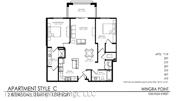 Large 1 Bedroom 1 Bathroom - Beautiful 1 bedroom apartment! Open floor plan with dramatic 9 foot ceilings, granite island, stainless steel appliances, and washer/dryer in unit. Enjoy two rooftop terraces with beautiful views of the lake and capitol or relax on your private balcony or patio. The property also has a club room with a pool table, darts, and big screen television. Please note, most first floor apartments have convenient exterior access as well as interior corridor access and are dog friendly.